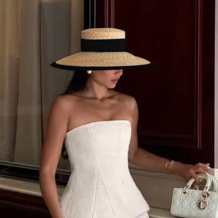 여름 밀짚 모자 검은 테두리 프랑스 우아한 숙녀 해변 여행 태양 모자 햅번 스타일 넓은 챙 밀짚 모자 кепка женская