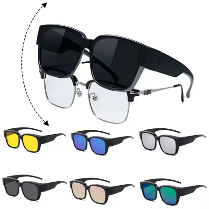 새로운 패션 편광 선글라스 커버 근시 처방 안경 휴대용 남성 여성 빈티지 낚시 운전 안경