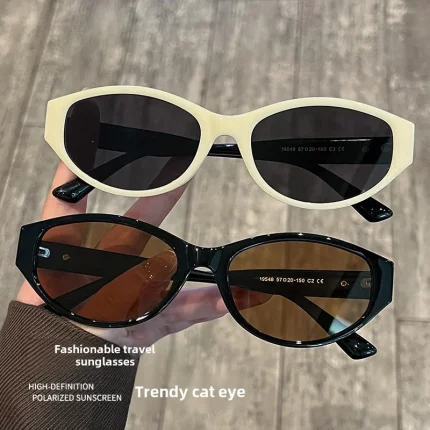 고급 패션 트렌드 UV 방지 편광 거리 사진 선글라스를 갖춘 여성용 맞춤형 타원형 고양이 눈 선글라스