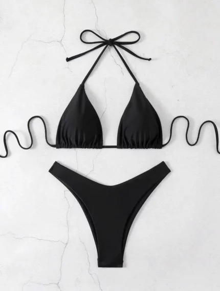 여성용 섹시한 심플 비키니 세트, 단색, 화이트, 블랙, 커피 홀터 비키니 수영복, 레이스업, 브라질 해변 목욕 세트, 2025 신상