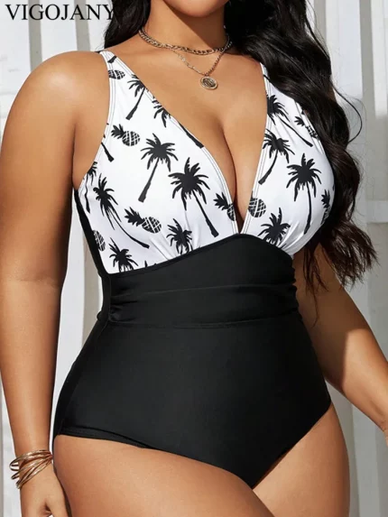 비고자니 2025 여성 패치워크 플러스 사이즈 수영복 스트랩 푸쉬업 큰 사이즈 원피스 수영복 브라질리언 비치 통통한 여성 수영복