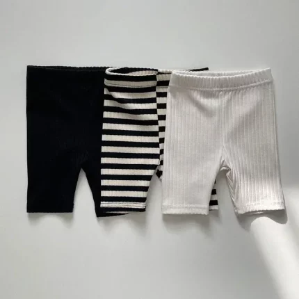 여름 새 어린이 솔리드 반바지 코튼 소녀 레깅스 스트라이프 베이비 스트레치 바지 유아 유아 반바지 아동복