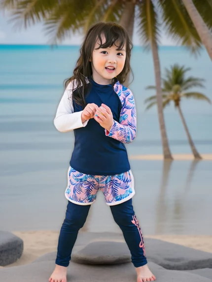 여자 투피스 수영복 긴 소매 다이빙 슈트 학생을위한 빠른 건조 UV 보호 바지 어린이 폴리 에스터 직물 수영복