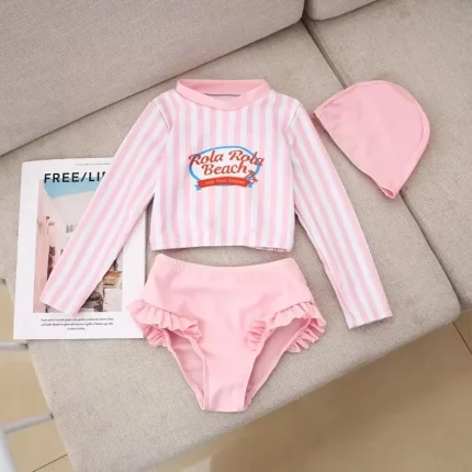 Korean Style 2024 New Children’s Swimsuit Boys Girls Three-Piece Set Long Sleeved Trousers Middle Large Children’s Beachwear