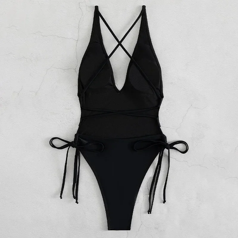 섹시한 폭락 원피스 수영복 여성 수영복 2025 여성용 레이스 업 수영복 Monokini Beachwear Solid