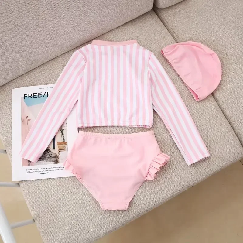 소녀를위한 한국 수영복 어린이 아기 소녀 스플릿 수영복 태양 방지 긴 소매 어린이 비키니