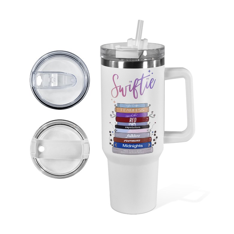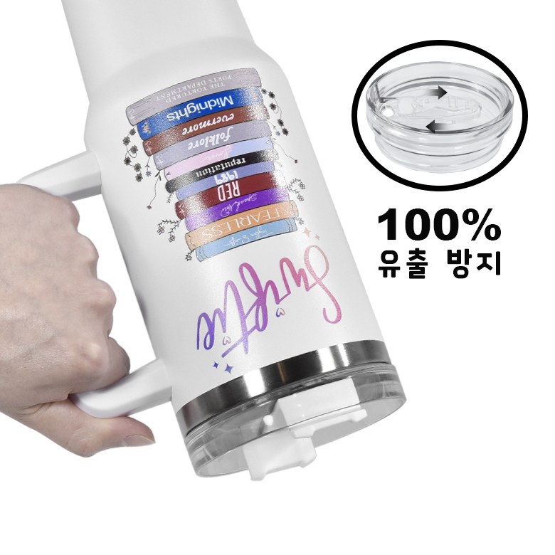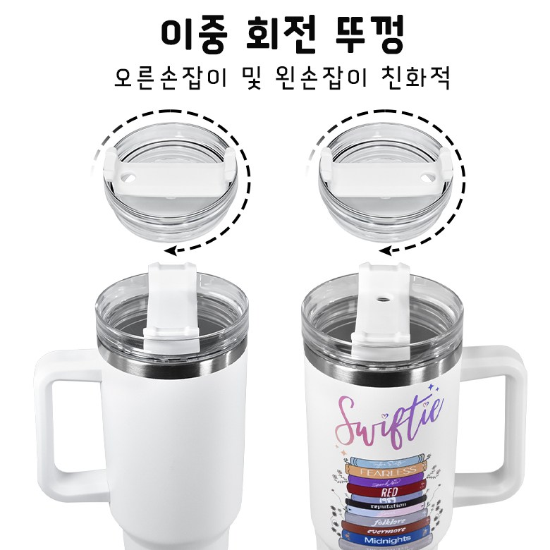 손잡이 차량용 스트로우 스테인리스 스틸 텀블러 + 뚜껑 2개입