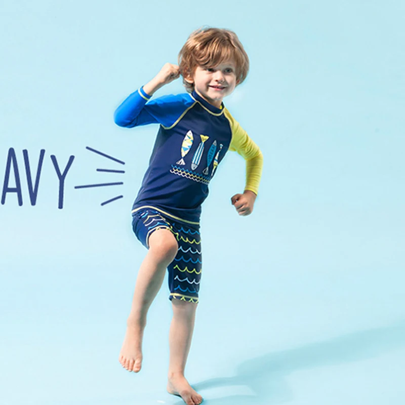 어린이 소년 수영복 멋진 인쇄 2 Pcs 태양 보호 여름 어린이 보드 반바지 어린이 소년 수영복 해변 서핑 잠수복