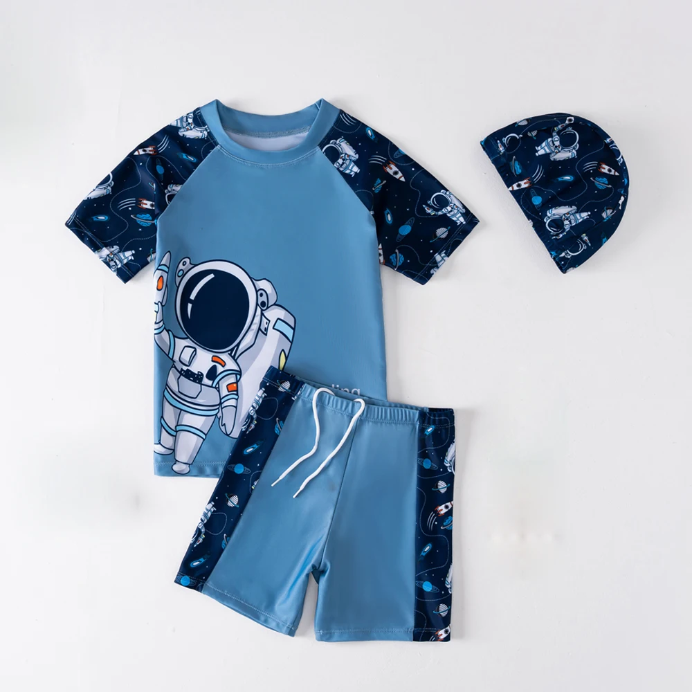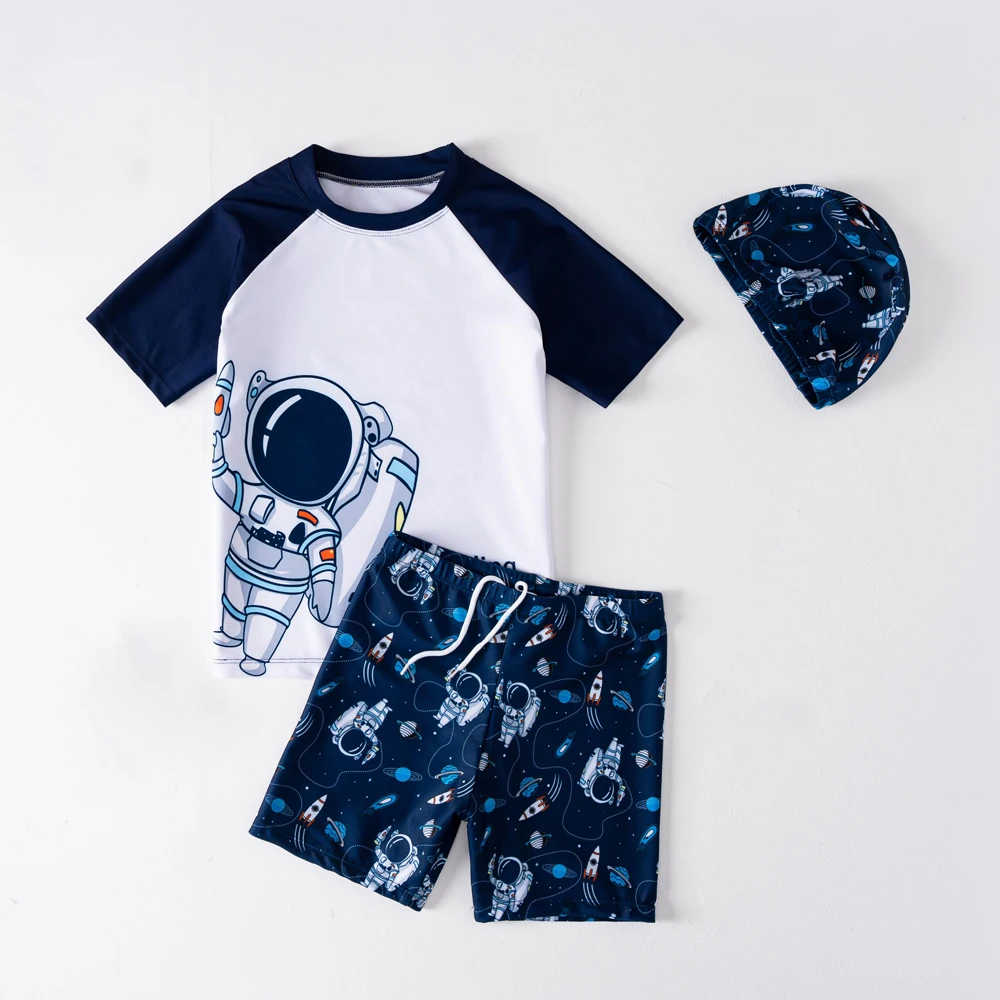 여름 세트 만화 인쇄 어린이 소년 수영복 어린이 수영복 서핑 정장 모자와 소년 Beachwear에 대한 수영복