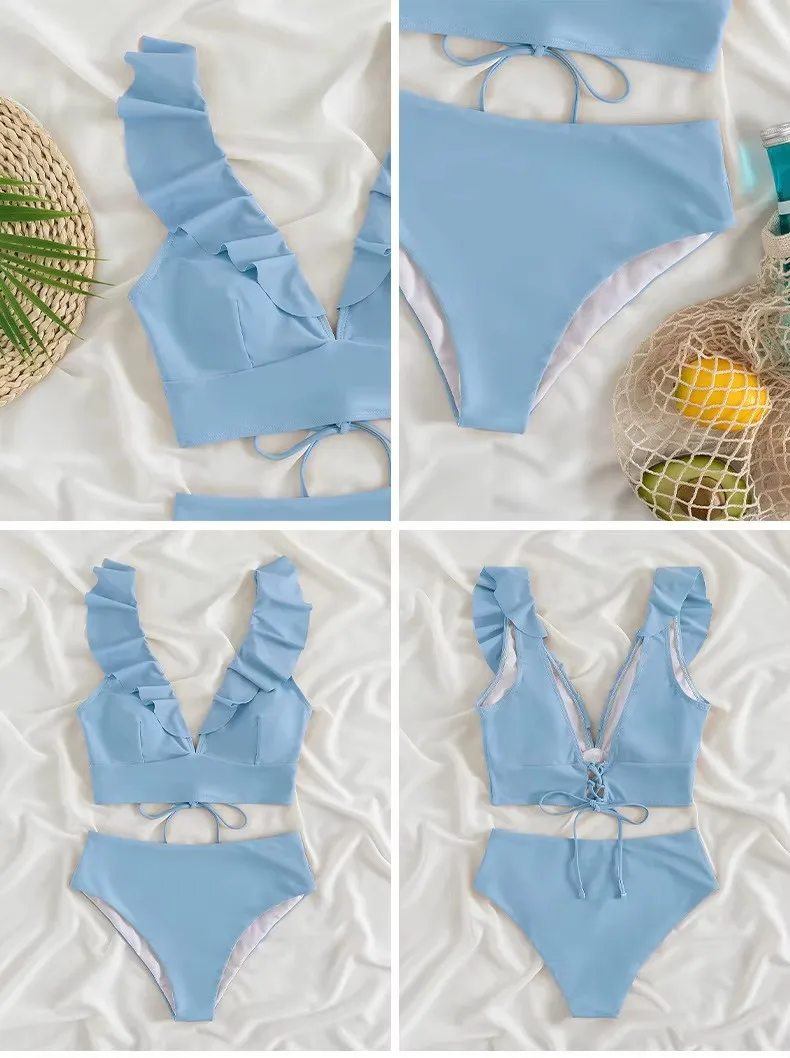 “여성용 투피스 비키니 세트, 섹시한 수영복, 탱키니 패션, 프릴 비키니, 수영 세트, 여름 비치웨어 의류”의 첫 상품평을 남겨주세요 응답 취소