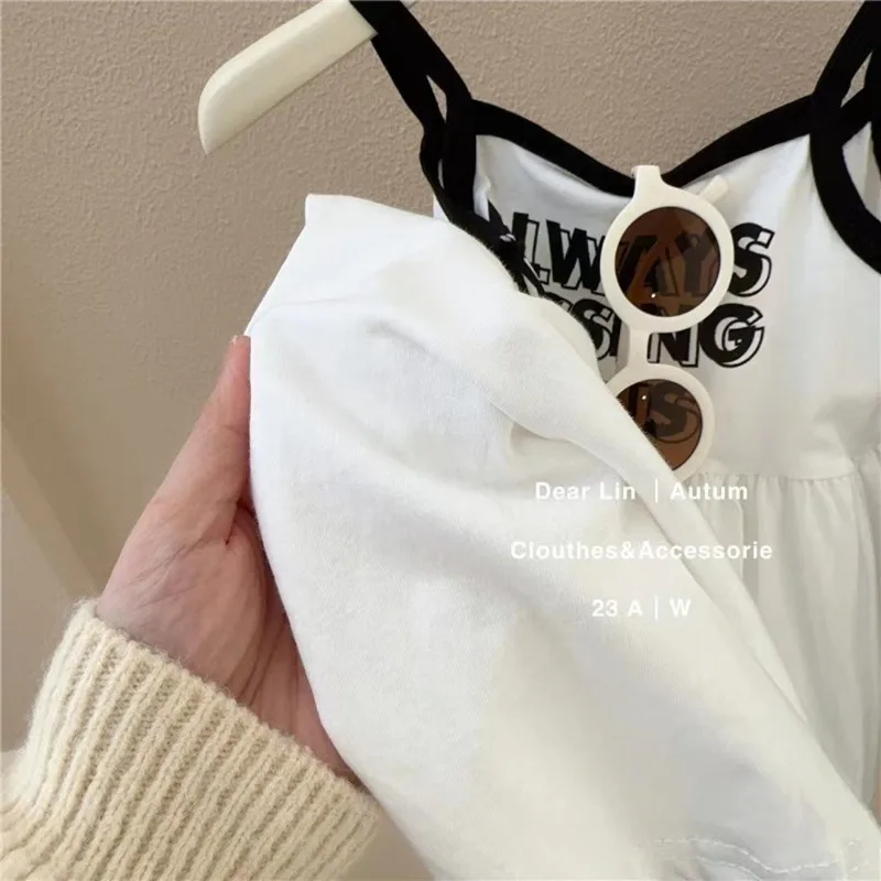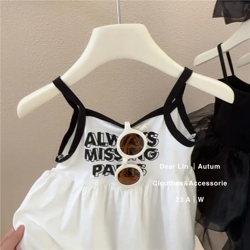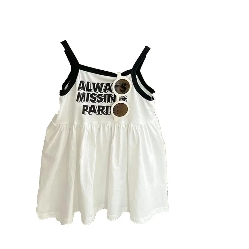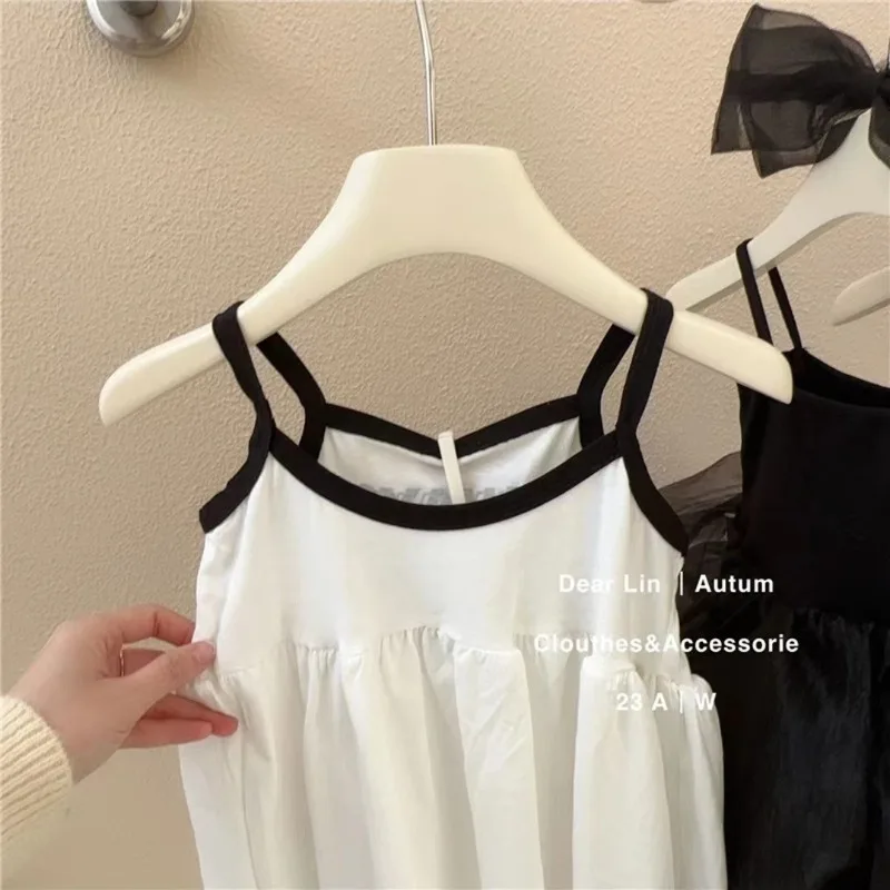 여자 여름 서스펜더 드레스 2024 아기 소녀 달콤하고 귀여운 공주 드레스 어린 소녀 민소매 얼음 실크 스커트