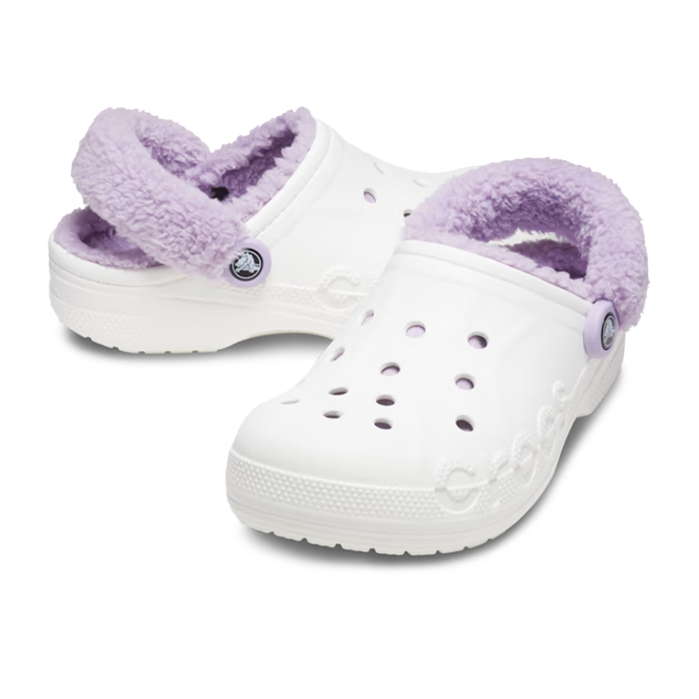크록스 바야 라인드 퍼즈 스트랩 클로그 성인 털 겨울 크록스 화이트 라벤더 206633-577