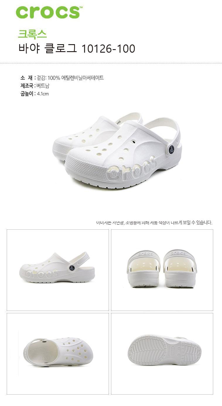 크록스 슬리퍼 크록스 클래식 바야 클로그 슬리퍼 샌들 화이트 10126-100