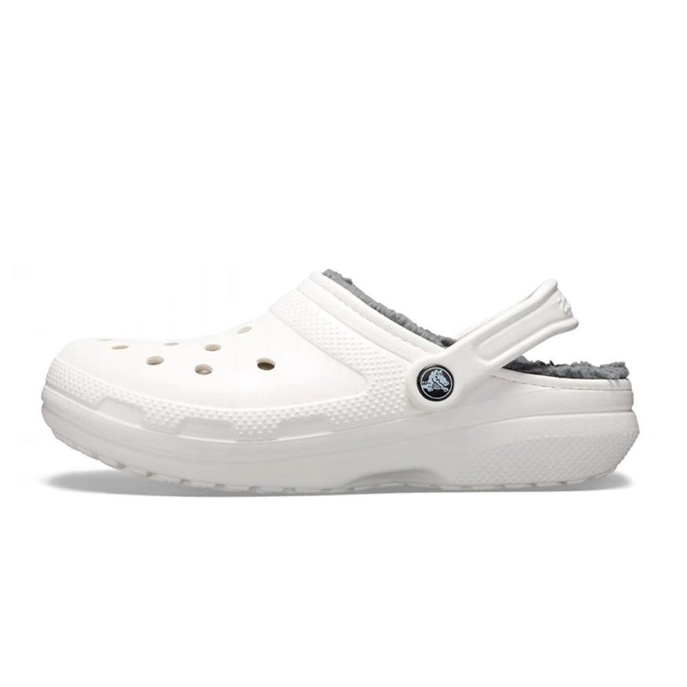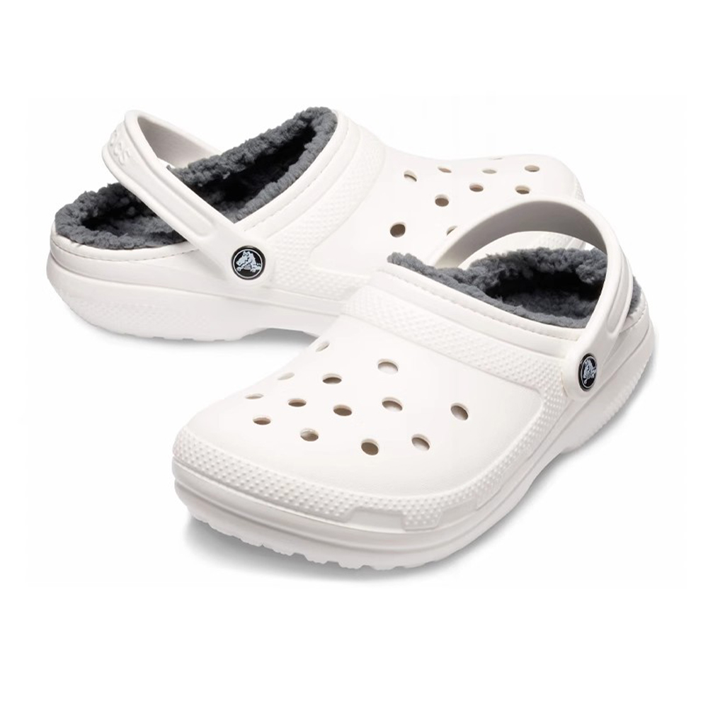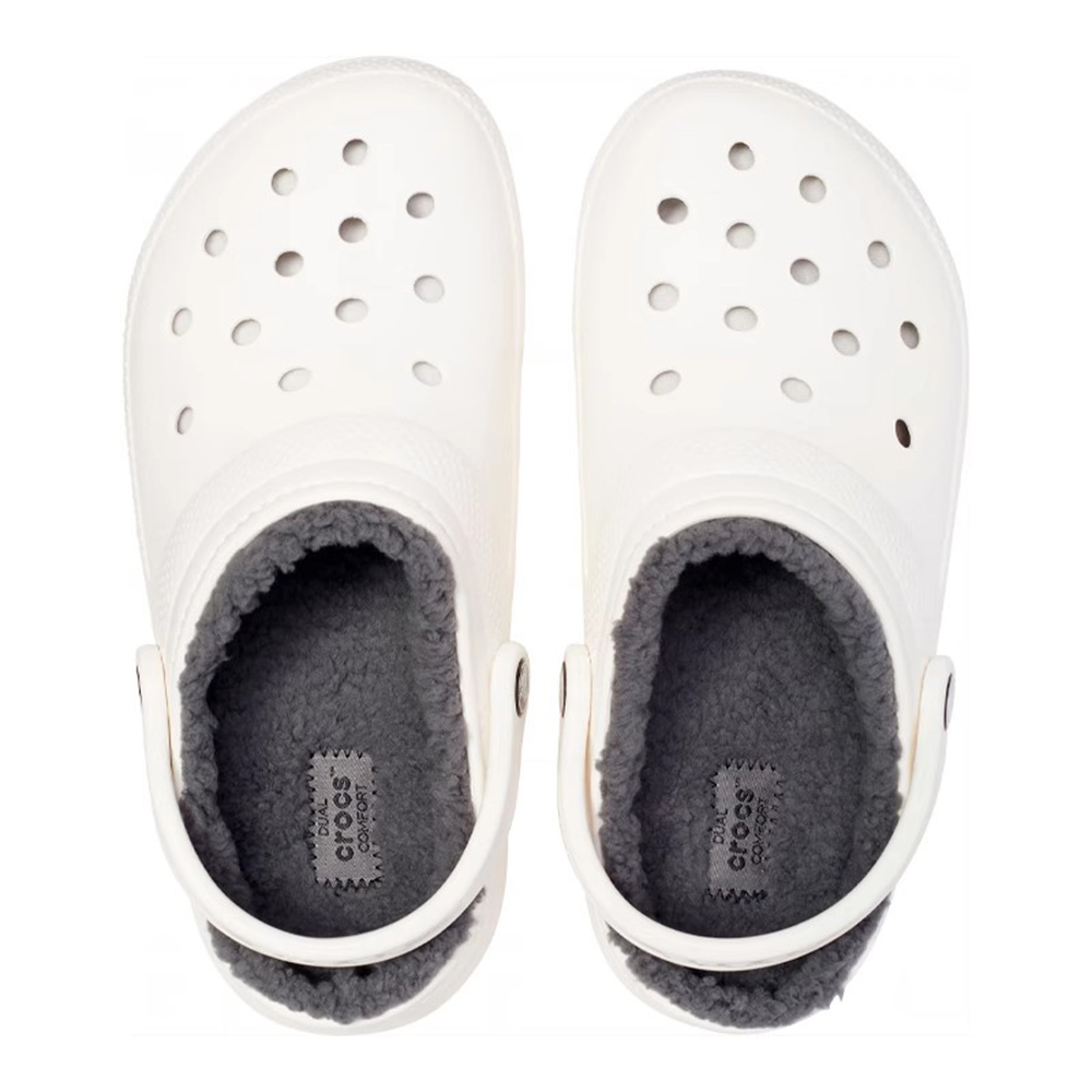 크록스 클래식 라인드 클로그 화이트/그레이 겨울 털크록스 203591-10M