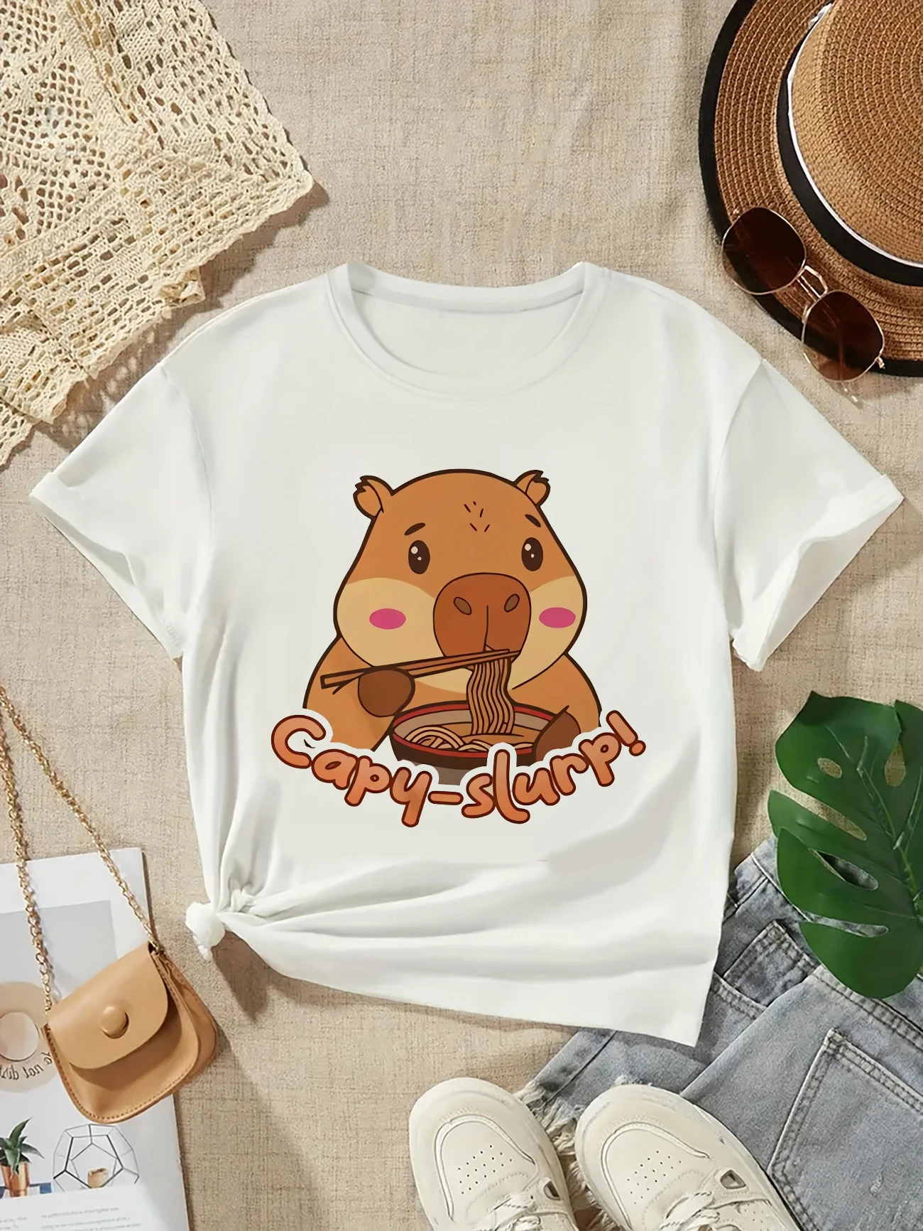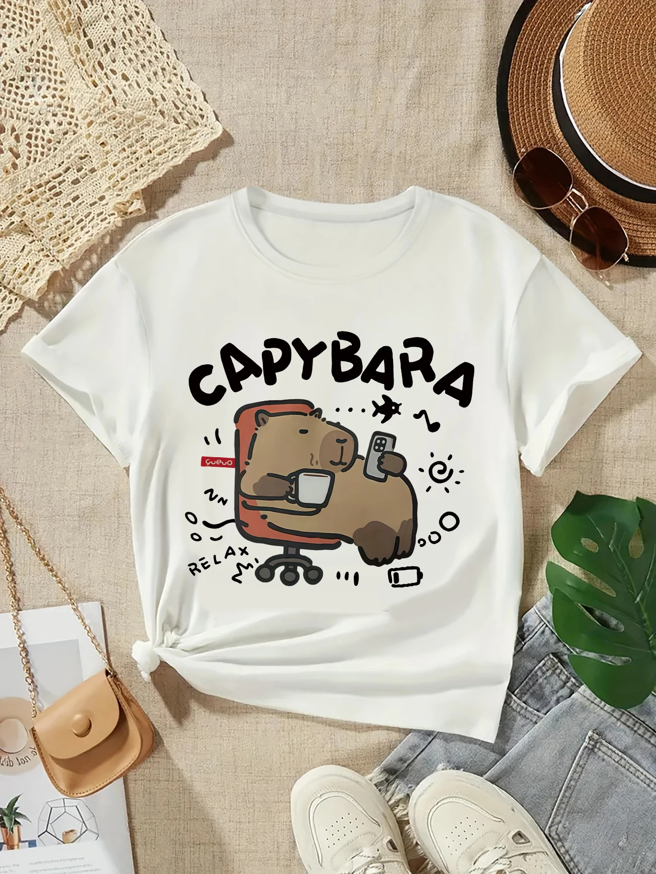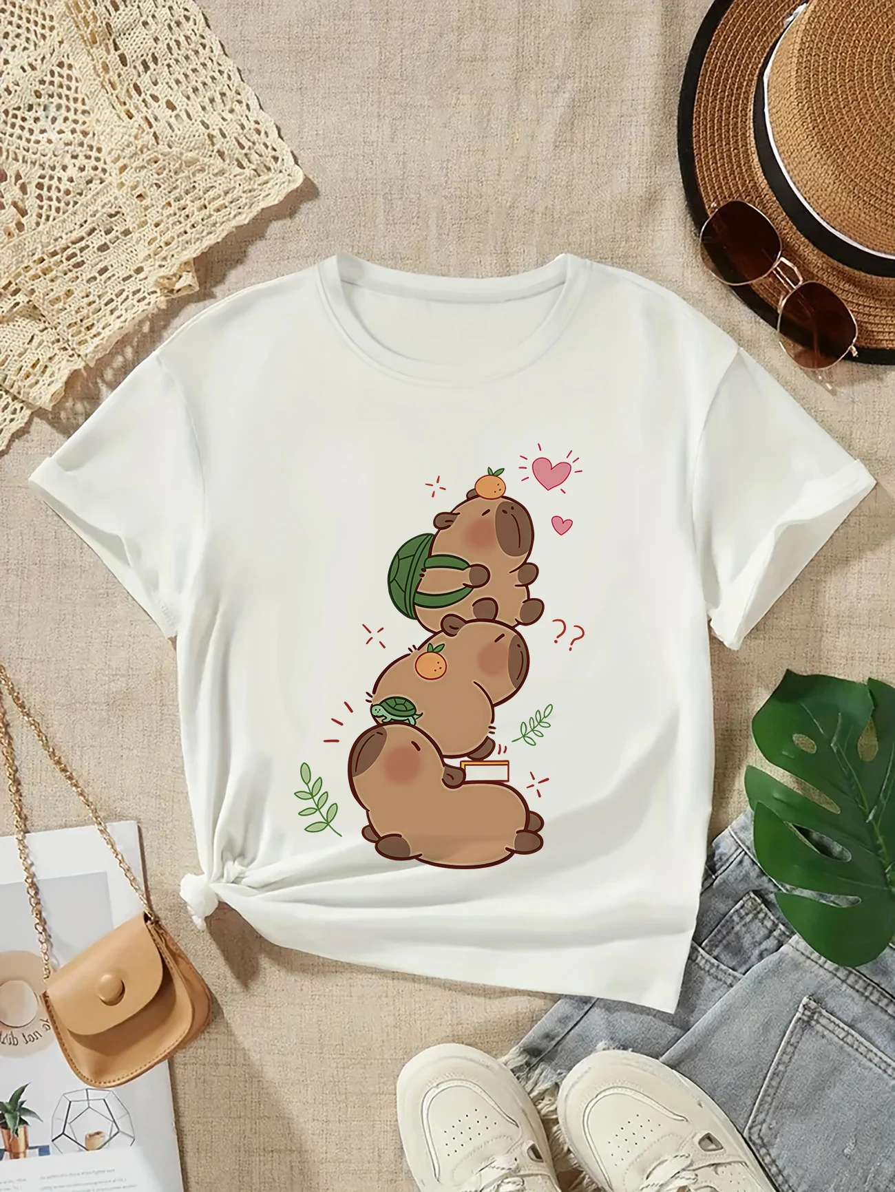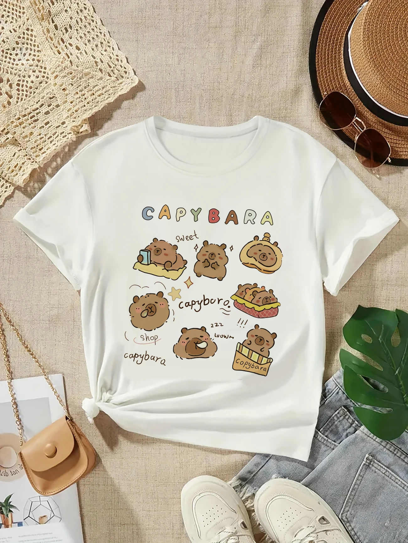 2025 카피바라 티셔츠 키즈 어린이 티셔츠 카피바라 만화 의류 키즈 소녀 소년 카피바라 티셔츠 베이비 캐주얼 탑 의류