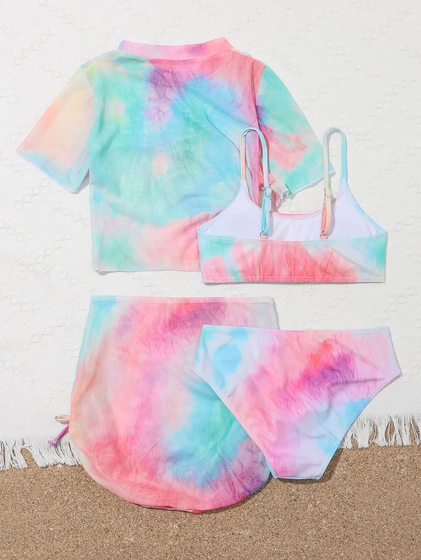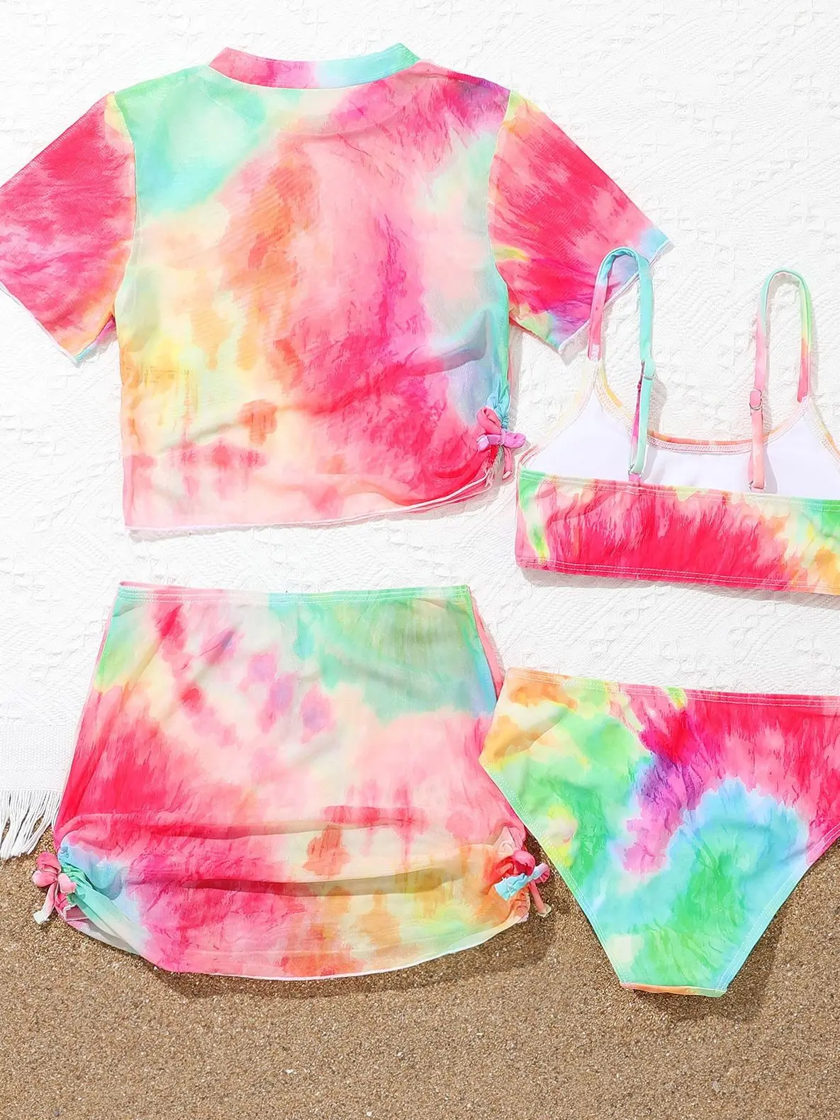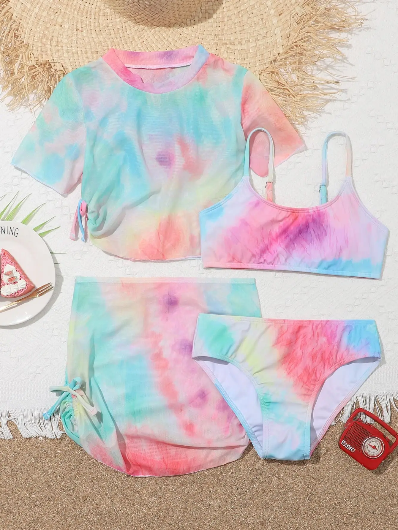 4 조각 비키니 세트 탑 & 스커트 2025 소녀 수영복 어린이 수영복 여성 어린이 Bathers 수영복 수영 수영복 Beachwear