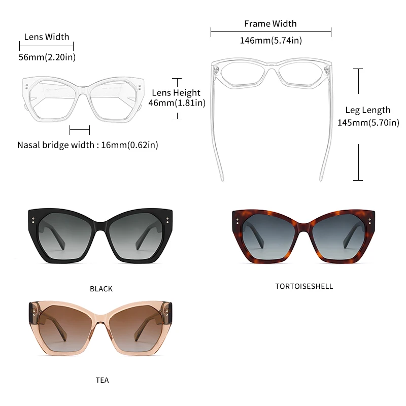 GCV 브랜드 아세테이트 외관 특허 디자인 여성용 나비 직사각형 삼각형 편광 선글라스 UV400 패션