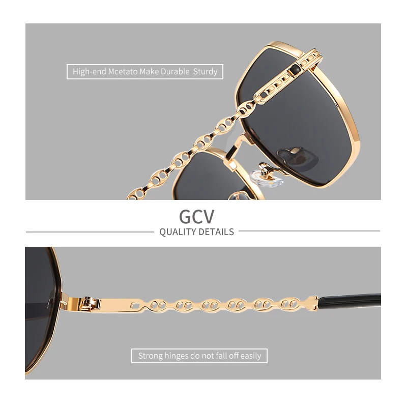 GCV 브랜드 클래식 레트로 여성용 직사각형 사각형 금속 프레임 안경, 선글라스, 폴라로이드 렌즈, Box Oculos De Sol Gafas