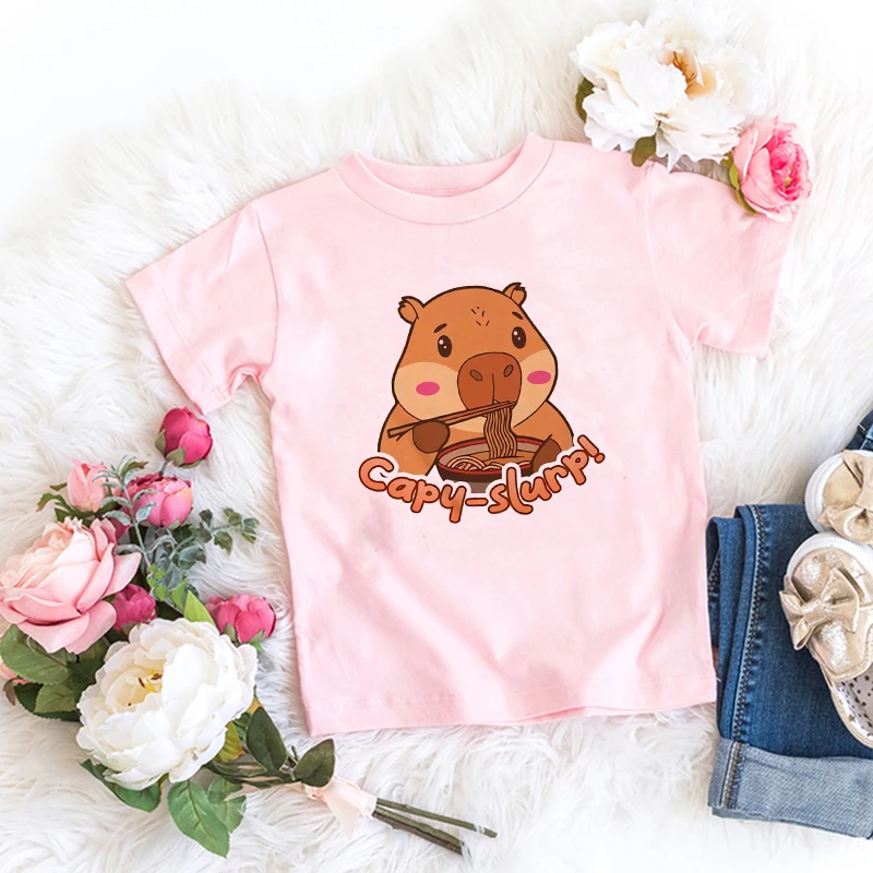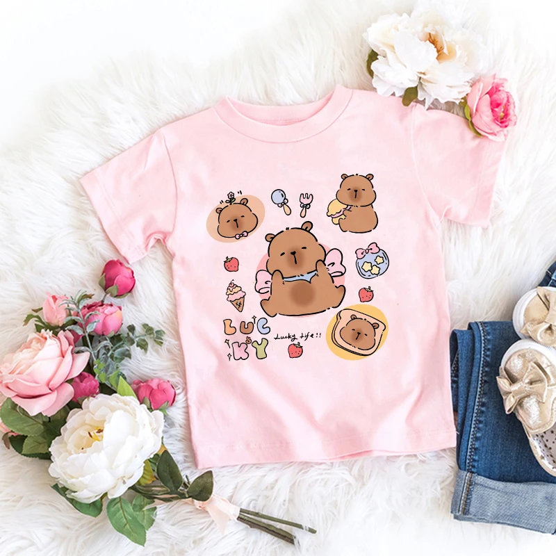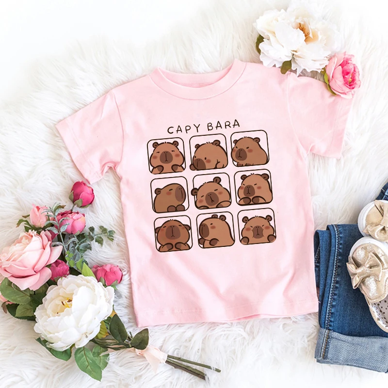 Kawaii Capybara Tshirt 어린이 어린이 티셔츠 capibara 만화 의류 키즈 소녀 소년 Capybaras T 셔츠 아기 캐주얼 탑 의류