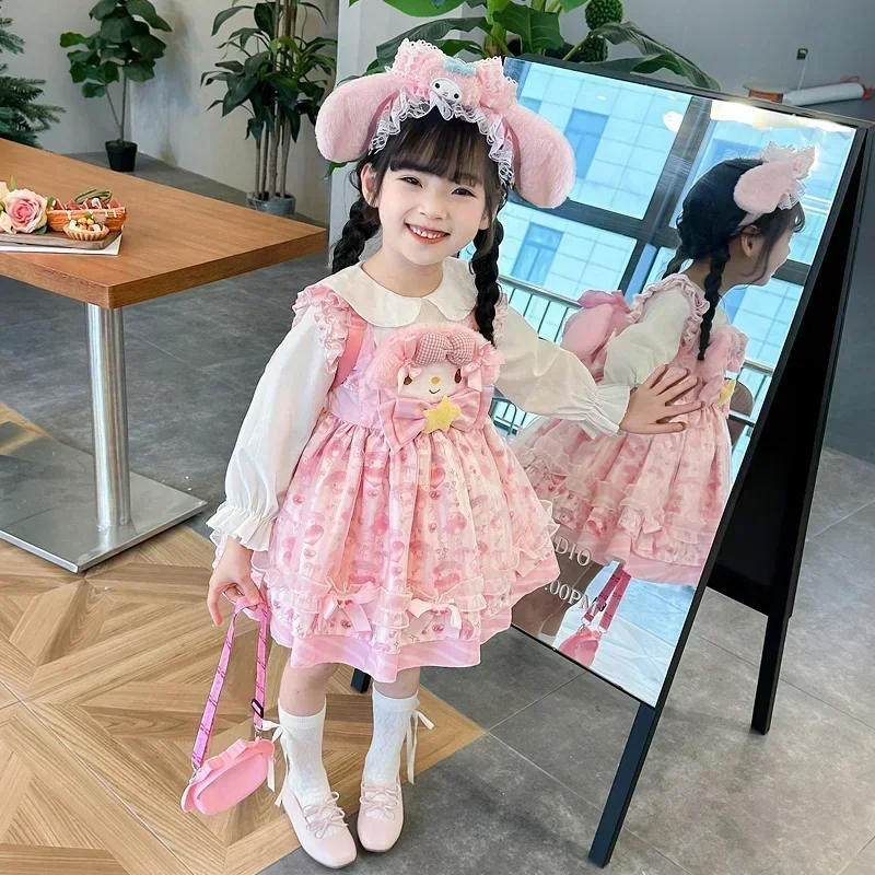 Sanrio Sanrio 마이 멜로디 어린이 코스프레 드레스 반팔 핑크 소녀 카와이 의류 공주 드레스 어린이 애니메이션 선물
